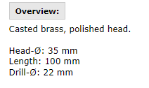 950.00 денари + ДДВЛиен клин за вертикално вградување со центар изработен од месинг, со полирана глава